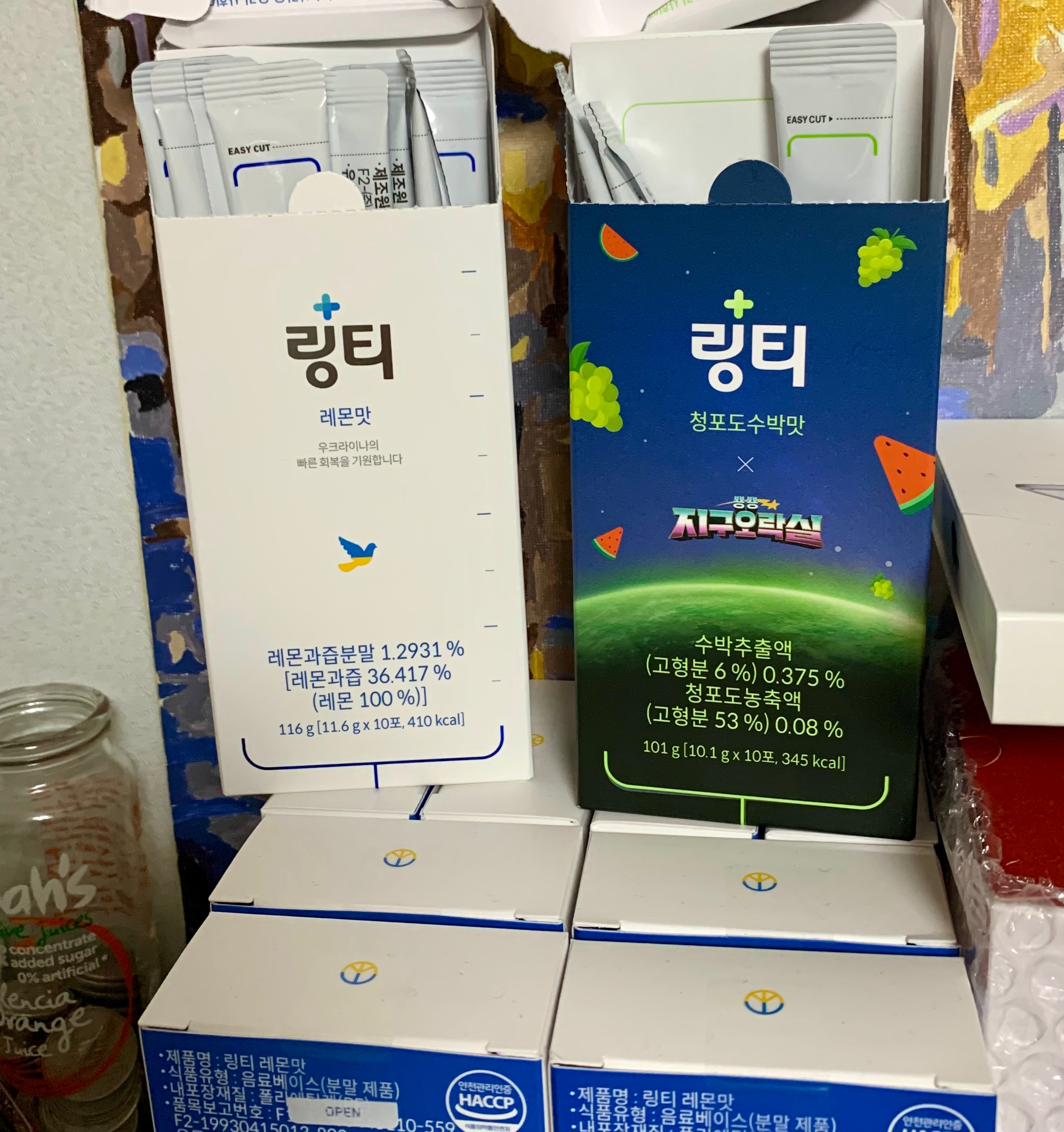 이번에 청포도수박맛이 새로나온 기념으로 한박스를 증정해줘서 마셔봤는데, 여태 나온 복숭아나 레몬보다 훨씬 맛있었다. 복숭아는 정말 입맛에 안맞았고 레몬이 그나마 괜찮아서 레몬맛으로 마셨었는데 다음에는 청포도수박맛으로 구매해야겠다.